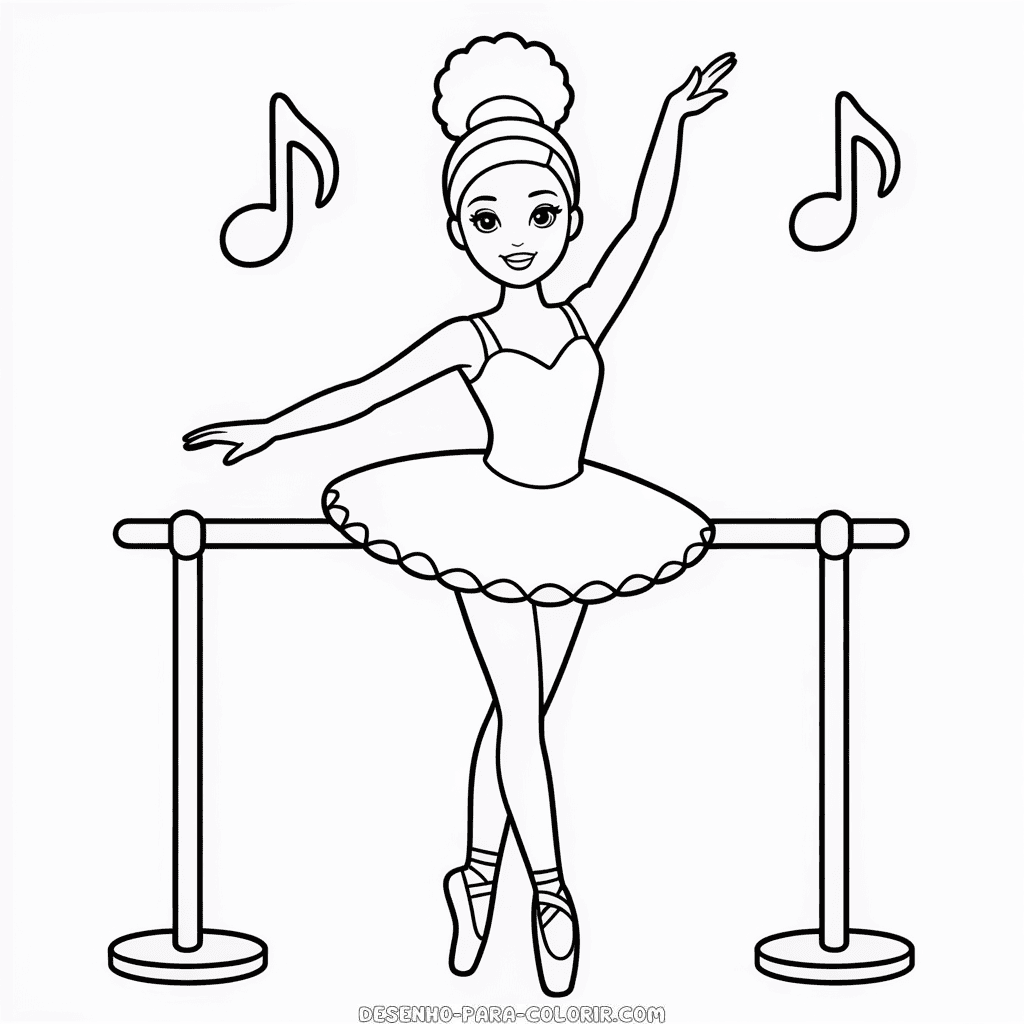 Desenho para colorir grátis de Barbie Bailarina Afro-Americana, retratando uma encantadora Barbie dançando em pose de balé. Imprima e colora esta ilustração da bailarina Barbie Afro-Americana perfeita para crianças que amam dança e moda. Imagem PNG de alta qualidade, em preto e branco, otimizada para impressão em PDF formato A4.