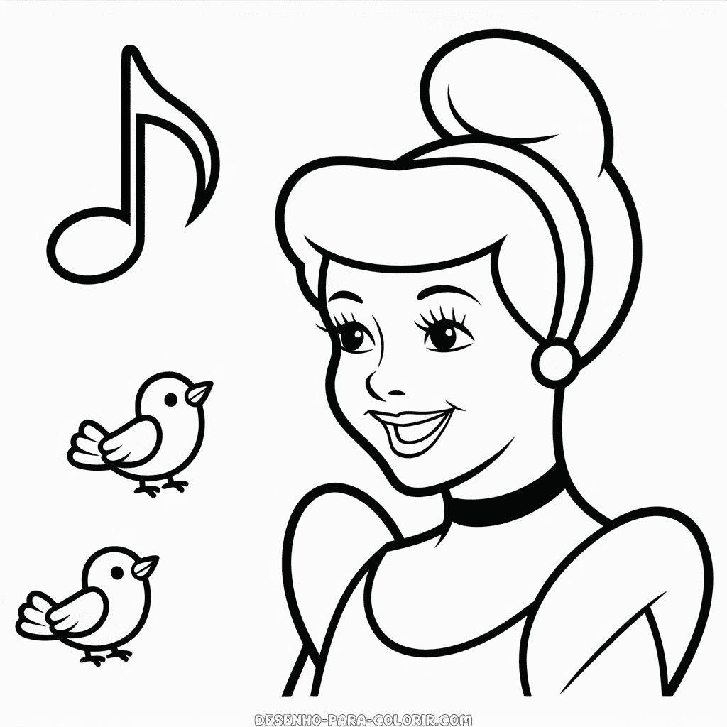 Desenho da Cinderela e Pássaros para Colorir