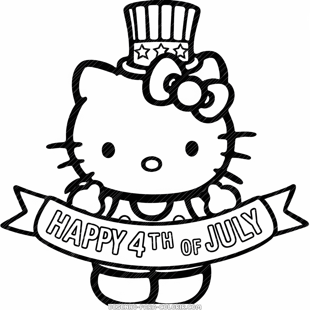 Desenho da Hello Kitty no Quatro de Julho para Colorir