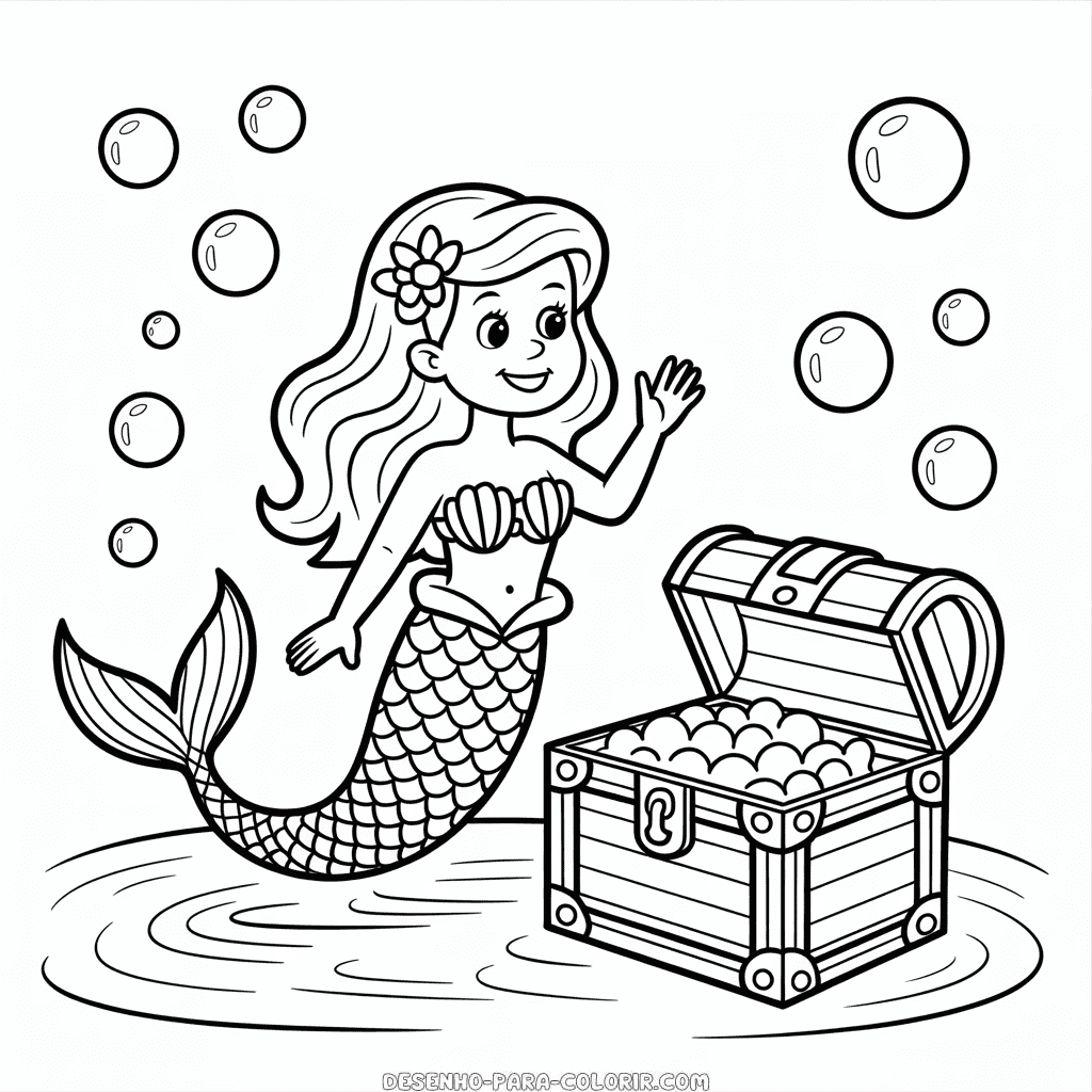 Desenho para colorir grátis de Sereia Livre, perfeita para os apaixonados por histórias submarinas e criaturas encantadas. Imprima e colora esta ilustração de uma sereia majestosa, oferecendo momentos mágicos para crianças. Imagem PNG de alta qualidade, em preto e branco, otimizada para impressão em PDF formato A4.