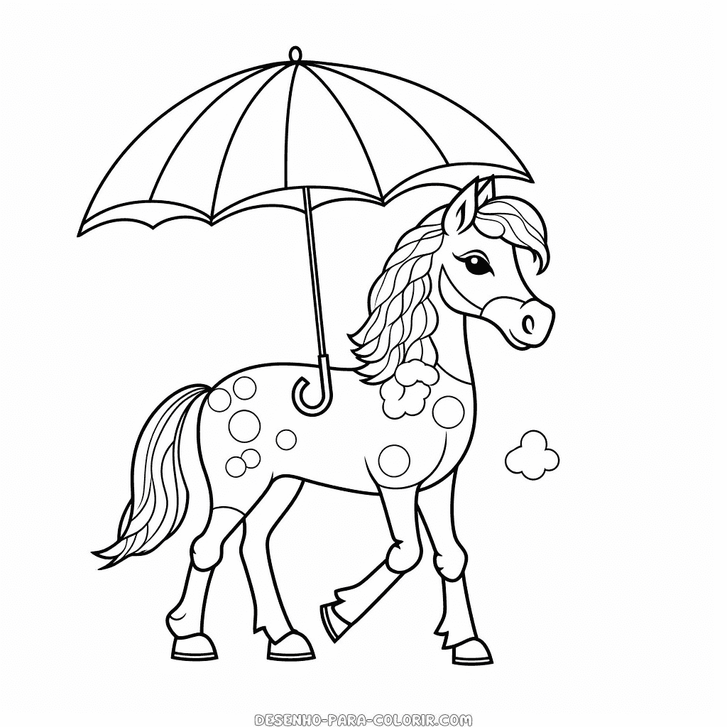 Baixe agora mesmo o Desenho de cavalo com guarda-chuva para colorir e deixe a diversão começar!