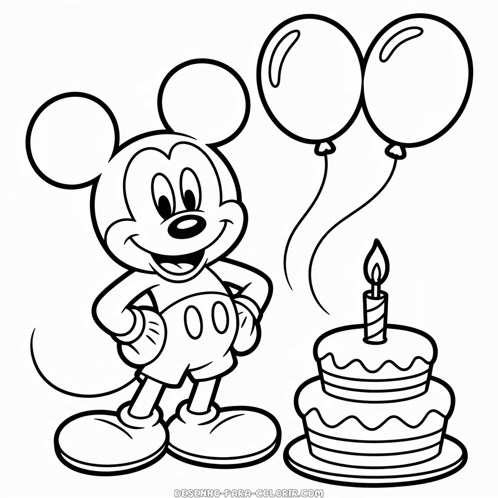 Desenho do Aniversário do Mickey Mouse para Colorir
