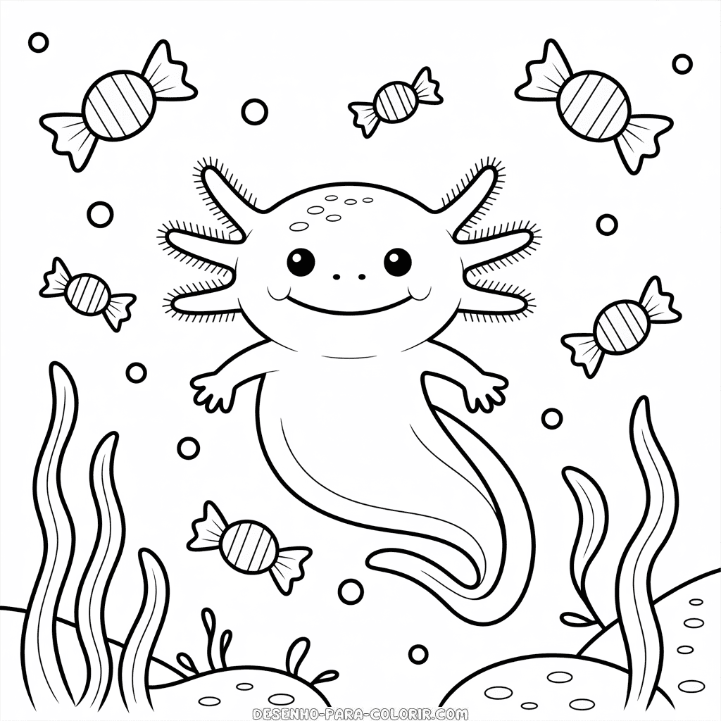 Desenho do Axolotl de Halloween para Colorir