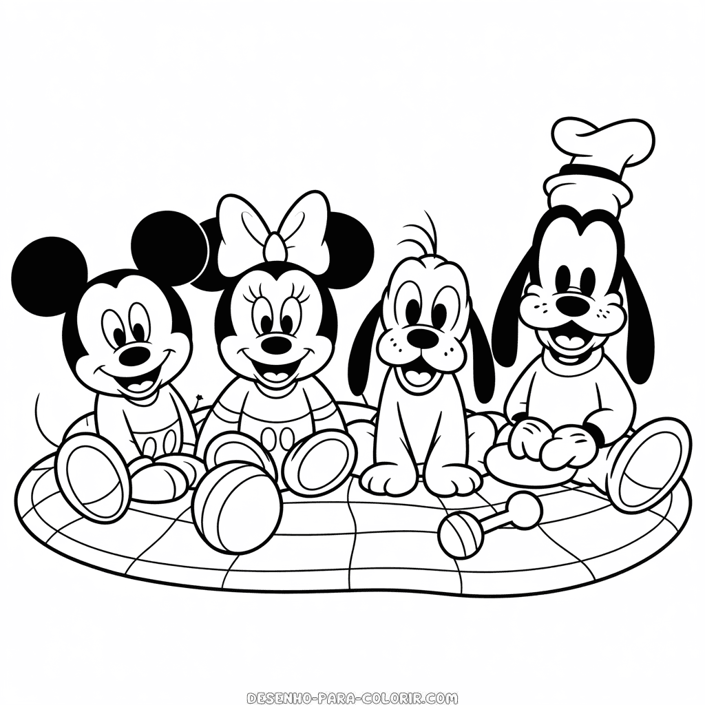 Desenho do Bebê Mickey, Minnie, Pluto, Pateta para Colorir