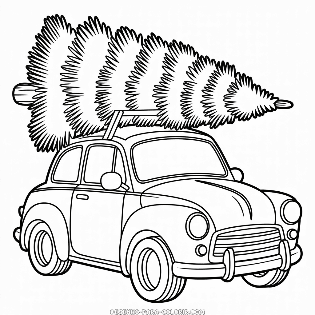 Desenho para colorir grátis de Carro de Natal, uma imagem encantadora de um veículo festivo preparado para a época natalina. Imprima e colora esta ilustração de carro temático de Natal para crianças. Imagem PNG de alta qualidade, em preto e branco, otimizada para impressão em PDF formato A4.