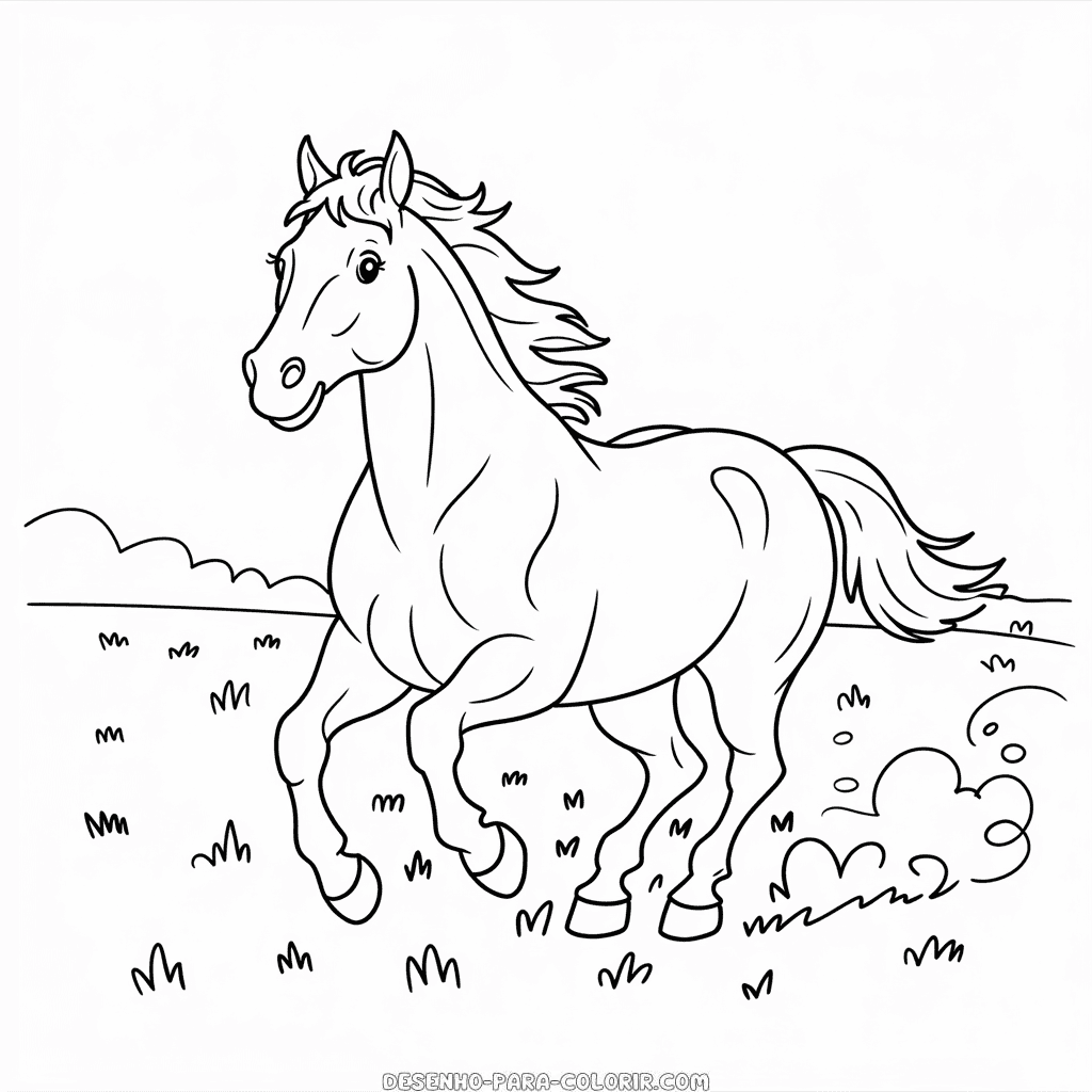 Desenho para colorir grátis de Cavalo Galopando, mostrando a majestade e elegância de um cavalo em movimento. Imprima e colora esta ilustração de um cavalo em pleno galope, perfeita para crianças que adoram animais e natureza. Imagem PNG de alta qualidade, em preto e branco, otimizada para impressão em PDF formato A4.