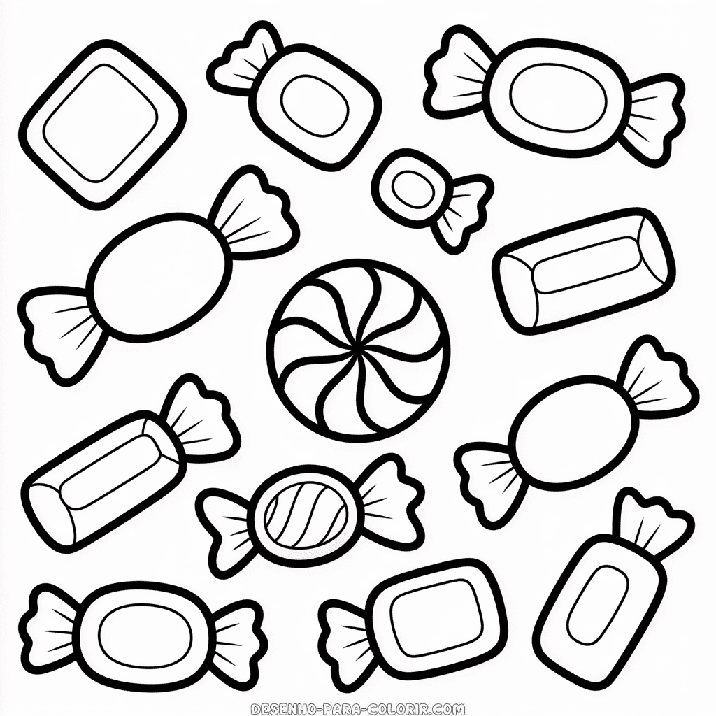 Desenho para colorir grátis de Doce de Natal, um doce típico das festas natalinas que traz a magia do Natal para os pequenos. Imprima e colora esta deliciosa ilustração de um doce natalino para crianças. Imagem PNG de alta qualidade, em preto e branco, otimizada para impressão em PDF formato A4.