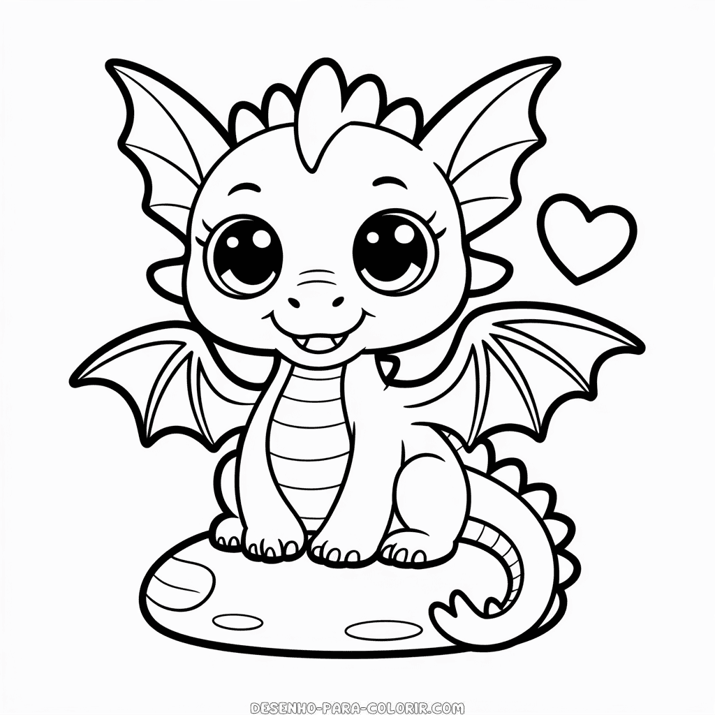 Desenho para colorir grátis de Dragão Chibi, um adorável dragão com características fofinhas e estilizadas. Imprima e colora esta ilustração de Dragão Chibi, perfeita para inspirar a criatividade das crianças. Imagem PNG de alta qualidade, em preto e branco, otimizada para impressão em PDF formato A4.