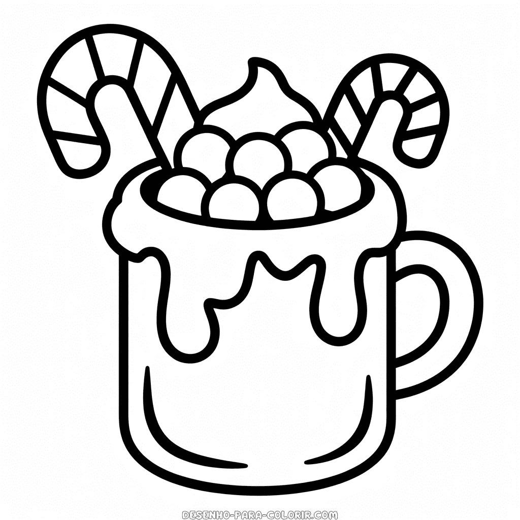 Desenho do Fofo Chocolate Quente de Inverno para Colorir