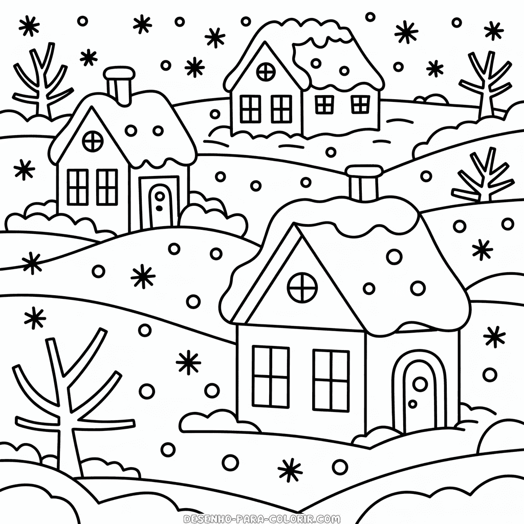 Desenho para colorir grátis de Fundo de Natal, capturando a mágica atmosfera natalina perfeita para as crianças. Imprima e colora esta ilustração de um cenário natalino encantador. Imagem PNG de alta qualidade, em preto e branco, otimizada para impressão em PDF formato A4.