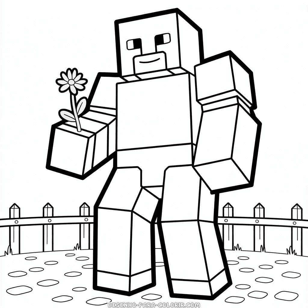 Desenho para colorir grátis do Golem Minecraft, uma figura poderosa e imponente do mundo Minecraft, perfeita para os jovens fãs do jogo. Imprima e colora este desenho do Golem do Minecraft para crianças. Imagem PNG de alta qualidade, em preto e branco, otimizada para impressão em PDF formato A4.