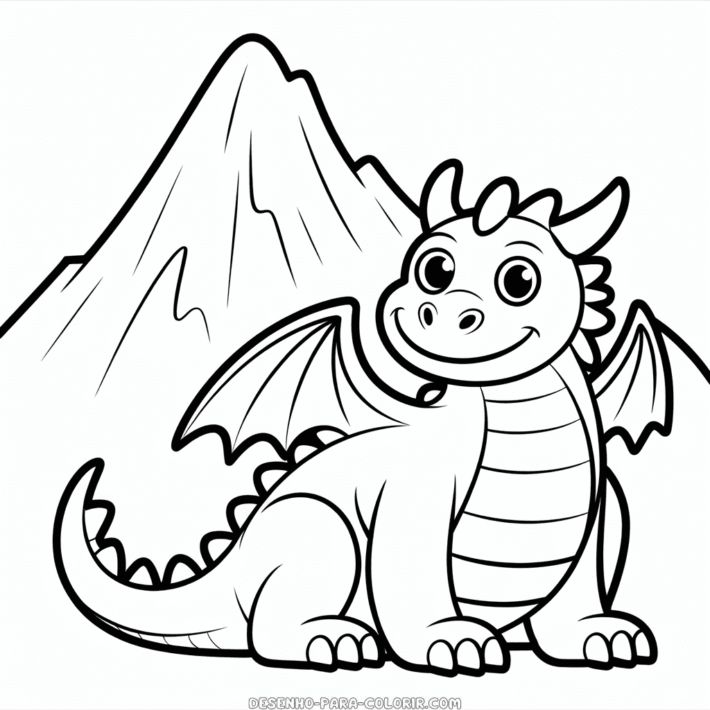Desenho para colorir grátis de Grande Dragão, uma majestosa criatura de fantasia que encanta as crianças. Imprima e colora esta impressionante figura do Grande Dragão para crianças. Imagem PNG de alta qualidade, em preto e branco, otimizada para impressão em PDF formato A4.