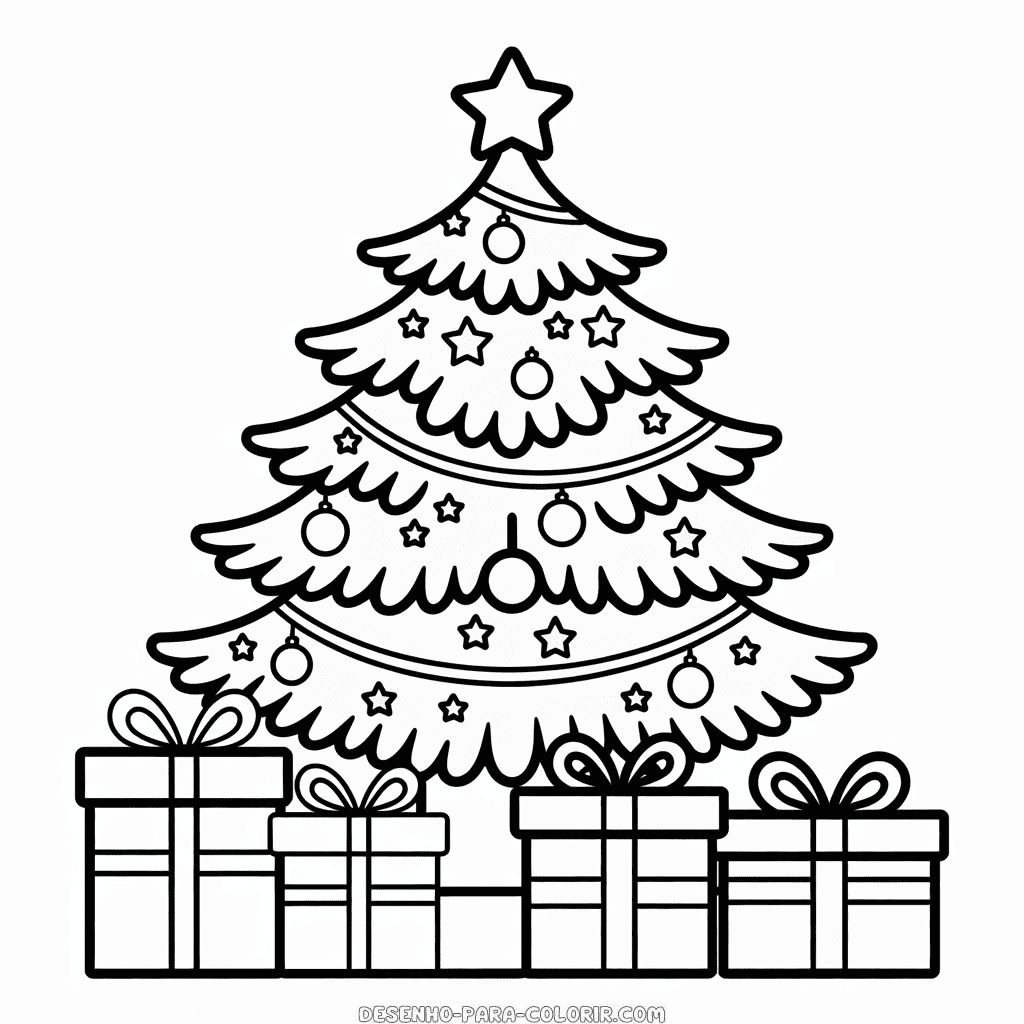 Desenho para colorir grátis de Grande Natal, retratando uma cena mágica e festiva com elementos típicos dessa época do ano. Imprima e colora esta imagem encantadora de Natal, cheia de alegria e tradição, perfeita para crianças. Imagem PNG de alta qualidade, em preto e branco, otimizada para impressão em PDF formato A4.