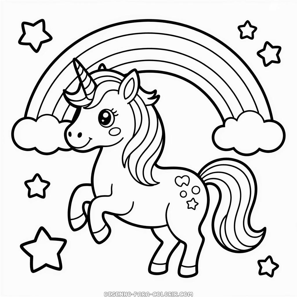 Desenho do Lindo Arco-íris e do Fofo Unicórnio para Colorir
