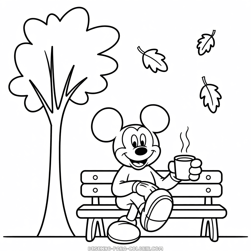 Desenho do Mickey Mouse e Bolo de Aniversário para Colorir