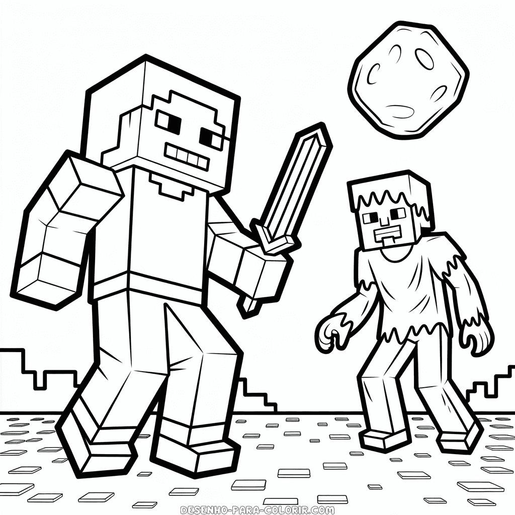 Desenho para colorir grátis de Minecraft difícil, perfeito para crianças que adoram desafios artísticos. Imprima e colora esta ilustração de cenário complexa do famoso jogo Minecraft. Imagem PNG de alta qualidade, em preto e branco, otimizada para impressão em PDF formato A4.