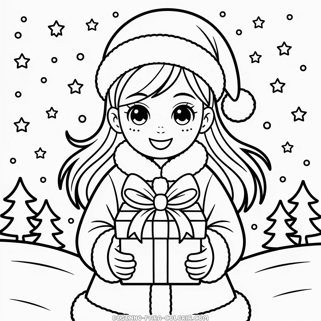 Desenho para colorir grátis de Natal Anime, trazendo o encanto e a magia das festividades com um toque especial de estilo japonês. Imprima e colora esta ilustração natalina em estilo anime, perfeita para alegrar as crianças durante as festas de fim de ano. Imagem PNG de alta qualidade, em preto e branco, otimizada para impressão em PDF formato A4.