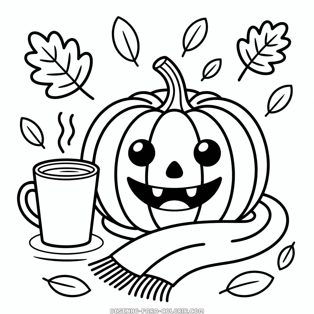 Desenho do Outono Fofo Estético para Colorir