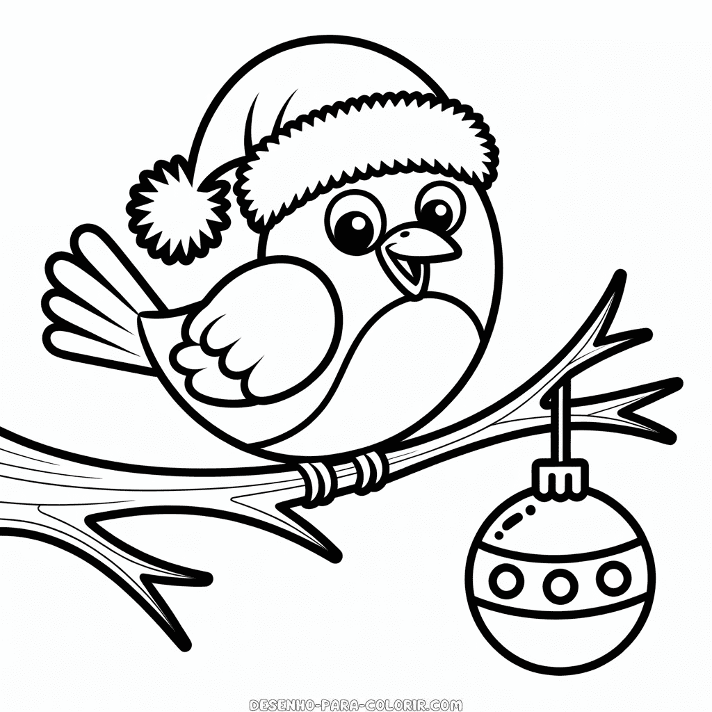 Desenho para colorir grátis do Pássaro de Natal, uma imagem encantadora que captura o espírito festivo com um toque de natureza. Imprima e colora esta ilustração do Pássaro Natalino para crianças. Imagem PNG de alta qualidade, em preto e branco, otimizada para impressão em PDF formato A4.
