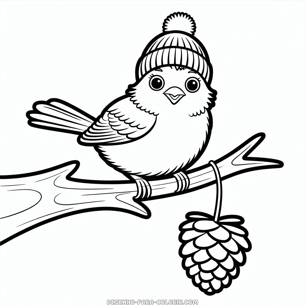 Desenho para colorir grátis de Pássaro do Inverno, uma imagem encantadora de um pássaro típico da estação mais fria. Imprima e colora esta ilustração de um lindo pássaro em meio ao inverno para crianças. Imagem PNG de alta qualidade, em preto e branco, otimizada para impressão em PDF formato A4.