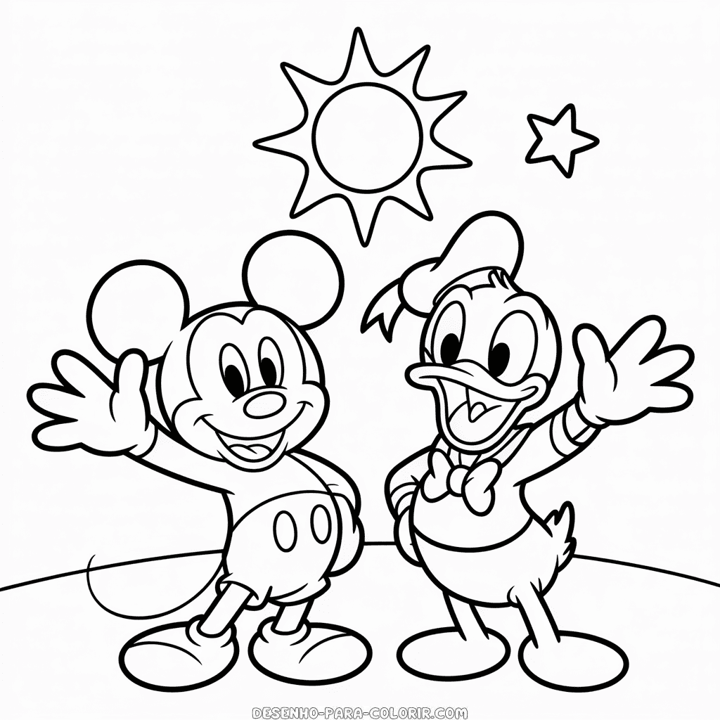 Desenho do Pato Donald e Mickey Mouse para Colorir