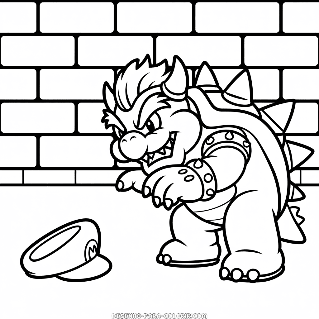 Desenho para colorir grátis de Bowser do Mario, o famoso vilão dos jogos de videogame, sempre desafiando o herói em aventuras emocionantes. Imprima e colora esta imagem do poderoso Bowser, arqui-inimigo do Mario, para crianças se divertirem. Imagem PNG de alta qualidade, em preto e branco, otimizada para impressão em PDF formato A4.