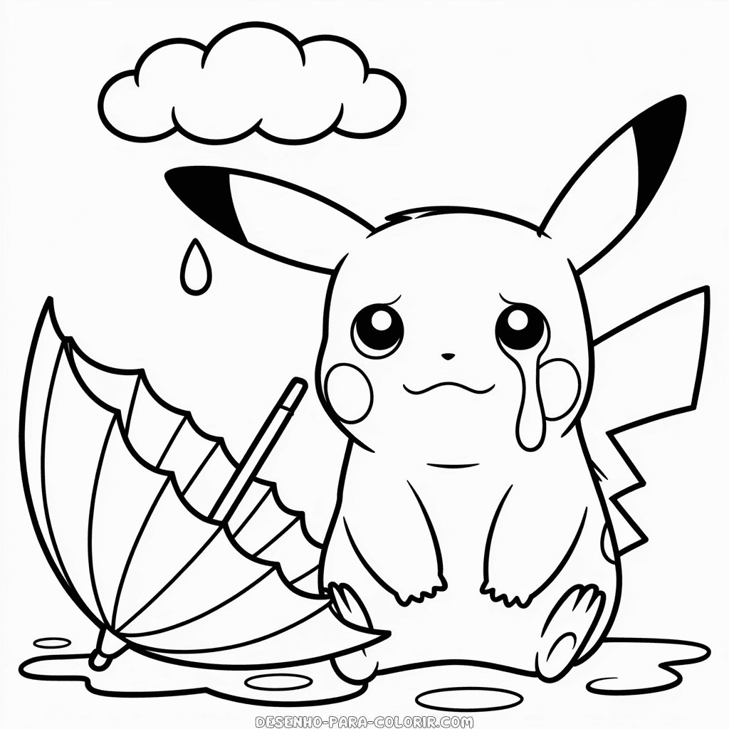Desenho para colorir grátis de Pikachu chorando, ideal para pequenos fãs deste adorável Pokémon amarelo. Imprima e colora esta imagem emotiva de Pikachu triste, perfeita para crianças que adoram personagens famosos do mundo Pokémon. Imagem PNG de alta qualidade, em preto e branco, otimizada para impressão em PDF formato A4.